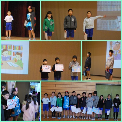 今日の児童集会は、図書委員の発表でした。