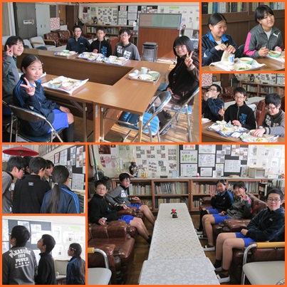 会食中は,入りたい部活や小学校での思い出,将来の夢などをクイズを交えて教えてくれました。