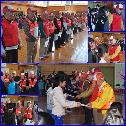 雨の日も、風の日も、毎日通学路に立って、いつも優しく、ときには厳しく子どもたちの登校を見守ってくださるスクールガードさん。今年一年のお礼をお手紙とともに受け取っていただきました。