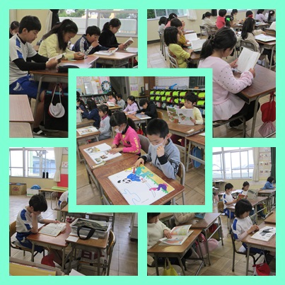 1,2年生では,絵本を読んでいる子に混じって,文字の多い物語に移行している子が増えてきました。興味・心の対象も広がってきたようです。