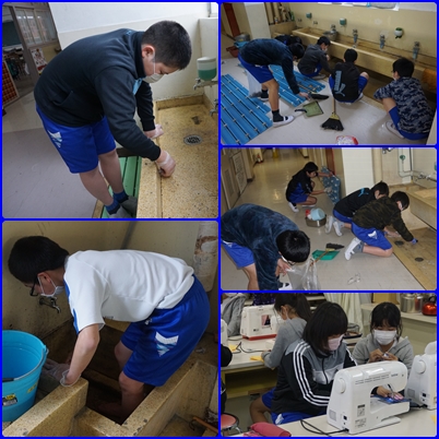 今年度の6年生は、男子は手洗い場をすみずみまできれいにしました。