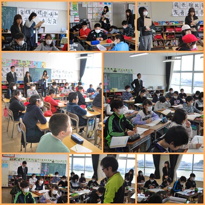 中学校の先生方に子どもたちは緊張!どきどきの1時間の授業でした。でも、手を振ってくださる先生もおられ、中学校の先生も優しそうだ!と思った子もいたことでしょう。