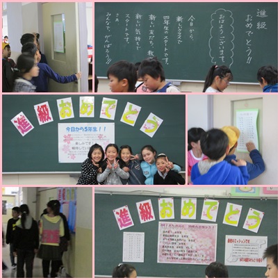 どきどきわくわくしながら,学級編成名簿の自分の名前を探し,新しい教室に入りました。