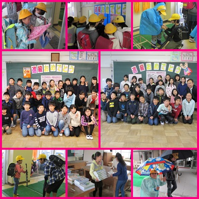 下校の時間も止まぬ雨。1年生を迎えに行って下校の準備。とても温かい気持ちにしてくれる最高学年の姿を発見!ひざまずいてレインコートを着せてあげたり,高い場所にある長靴をとってあげたりする姿が…。