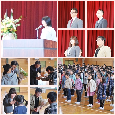 先生方,お一人お一人から山名っ子へ最後のお話をいただき,花束を贈りました。