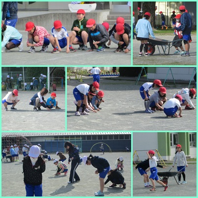 「はだしの生活」開始に向けて,全校で運動場の石拾いをしました。