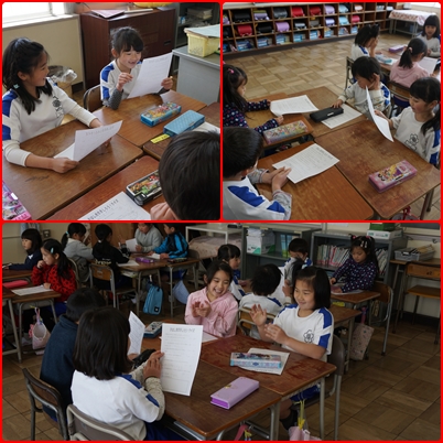 「先生のおじいちゃんはイタリア人である」「先生は小さいころ、お医者さんになりたかった」などの○×クイズを、理由を考えながら解答をして、担任について知りました。