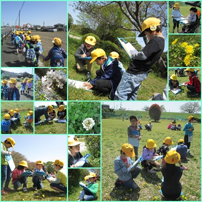 春見つけでは、タンポポやサクラ、カラスノエンドウ、モンシロチョウなど、たくさんの春を見つけました。