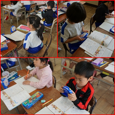 算数では時計を使った時刻と時間の学習をしています。今日は、正時からの時間の求め方を学習しました。