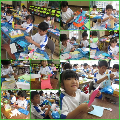 自分だけの素敵な動物になるように、顔のパーツや飾りなどを折り紙を切って工夫して貼り付けました。