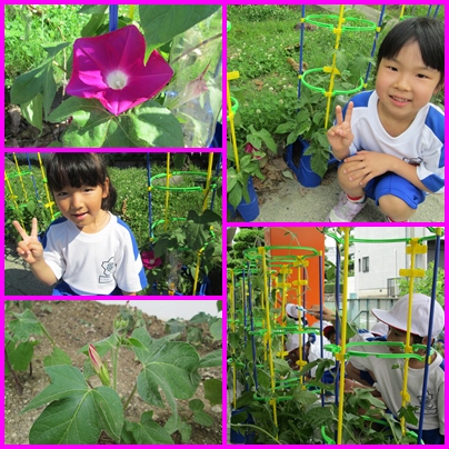 どの子のアサガオもたくさんの蕾がついています。自分のアサガオは何色が咲くのか、子どもたちはとても楽しみなようです。アサガオの花が咲いたら、しっかり記録もとっていきたいと思います。