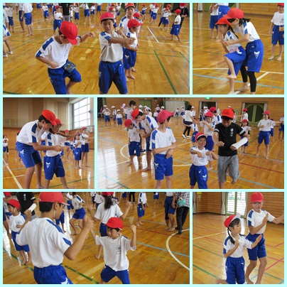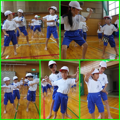 今日は,1年生に運動会の全校種目である「やろ舞」を教えて,一緒に踊りました。