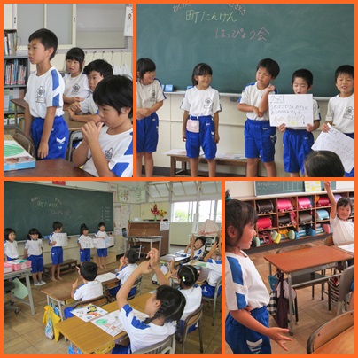 町たんけんに行ってから今日まで、見たことや質問したことを紙芝居にして発表する準備をしてきました。