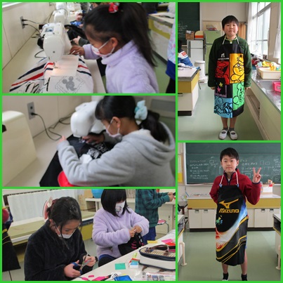 初めてミシンを使って製作しているエプロンも,いよいよ完成に近づいてきました。