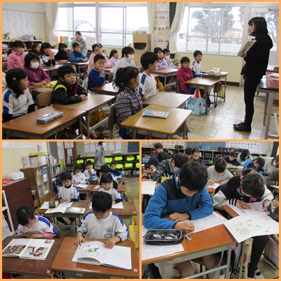 各教室では,読書やプリント学習が行われていました。5年生は,広報「ふそう」の表紙絵を描いていました。