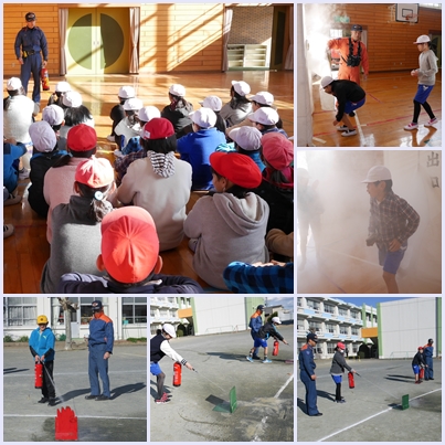 本日行われた避難訓練の後に、5年生が煙道体験と消火器体験をしました。