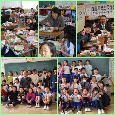 校区の議員さんと教育委員会の方にお越しいただいて、給食の会食会を行いました。