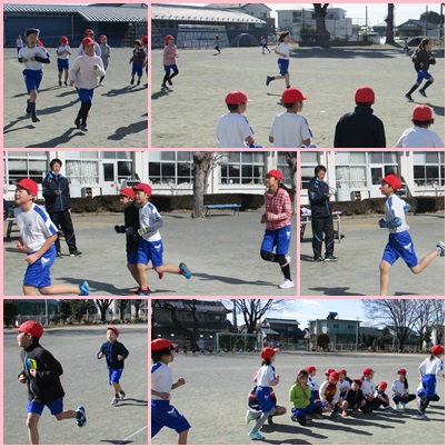 体育の時間の始めには,低中高学年それぞれのコースを走って,時間を計ったり,ペースを確認したりしていました。