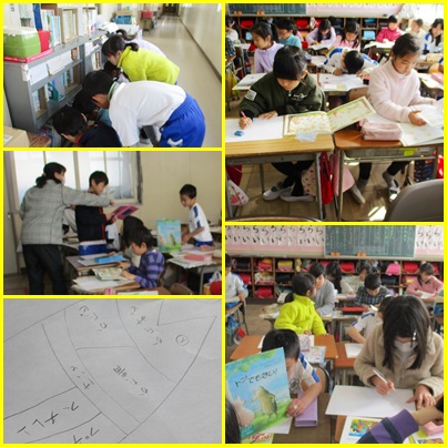 今日は下絵を描きました。表すものは動物。学級文庫で動物の絵が載っている本を探す子もいました。