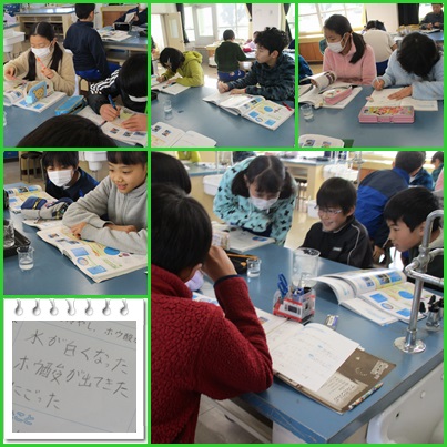 初めは透明だったビーカーの中に,白いホウ酸が出てきたのを見てにっこり。