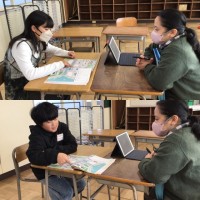 早く登校した子どもたちは傘を差さずにすみましたが,時間が経つにつれ傘を差している子が増えてきました。最後の班は,皆傘を差し一列に並んで登校してきました。