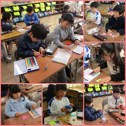 すっかりお兄さん・お姉さん気分になって,プレゼントの準備をする1年生でした。