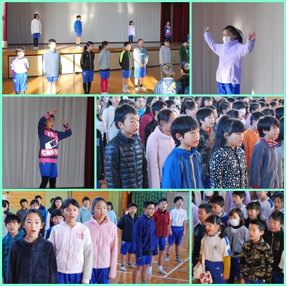 今日の歌声集会は,「6年生を送る会」に歌う歌の練習。1年生から5年生で行いました。