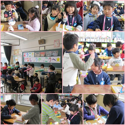 小学校のことを少し紹介した後、ペアの子と工作をして遊びました。
