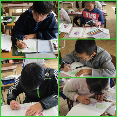 円の中心の回りの角を等分して正多角形をかいたり,コンパスを使って正六角形をかいたりできるようになりました。