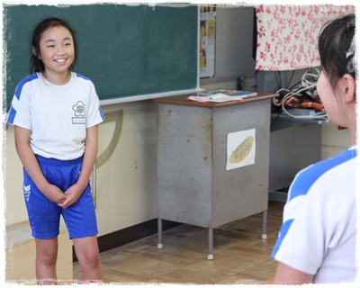 今日のほめ言葉のシャワーの主役は,いつも笑顔の子でした。
