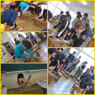 今日の授業参観は、 のこぎりで板を切ること、2回目の挑戦です。歯がゆいところや危なっかしいところもあったかもしれませんが、力を込め、集中して物事に取り組む、真剣な顔や姿をご覧いただけたかと思います。皆、前回よりも上手になっていました。この後、板を組み合わせ、色を塗り、思い思いの生き物に変身させていきます。