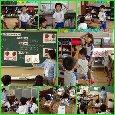 養護教諭の尾関先生に、いのちの学習「よいタッチ・わるいタッチ」の授業をしていただきました。