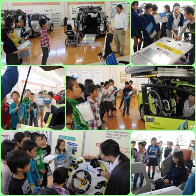 車いすを乗せるためのスロープがある車、助手席が自動で動く車、足が不自由な方でもブレーキやアクセルを操作できるようになっている車など、たくさん説明をしていただき、体験をさせていただきました。