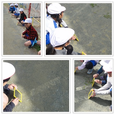 太陽の光を反射させて地面に写し、どのような光の道ができるか観察しました。