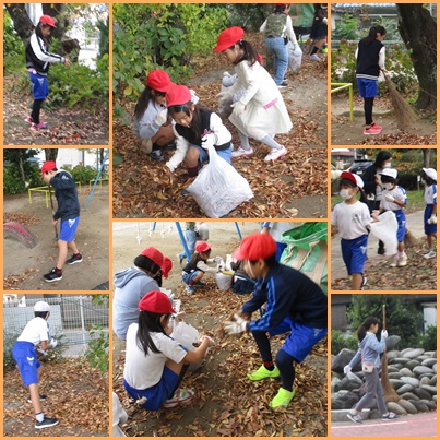 PTAの委員さんにもお手伝いをいただき,たくさんの落ち葉を拾うことができました。