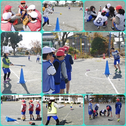 体育の授業で、ベースボール型スポーツに取り組んでいます。