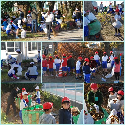 落ち葉拾い月間の取組で、全校で落ち葉拾いを行いました。