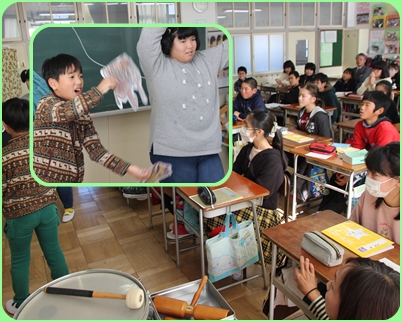 効果音に打楽器を使ったり,登場人物に合わせて声色を変えたり…。