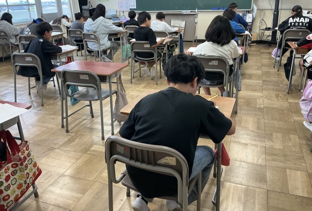 ドキドキしながら国語のテストが始まりました。初めてのテスト形式に、みんな緊張気味です。何度も問題を読み直しては考える姿に、高学年らしさを感じます。みんながんばれ!