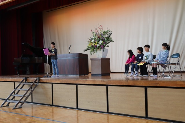 修了式後には、代表児童が今年度がんばったことを発表しました。