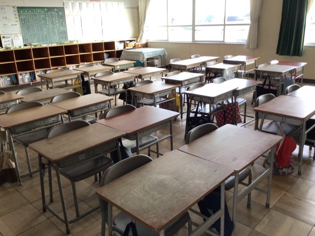 誰もいない、がらんとした教室。
