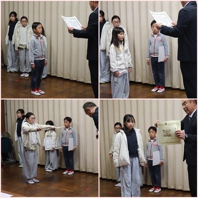 本日の朝会では、夏休み作品コンクールで入賞した児童を表彰し、その努力とがんばりを全校児童に紹介しました。
