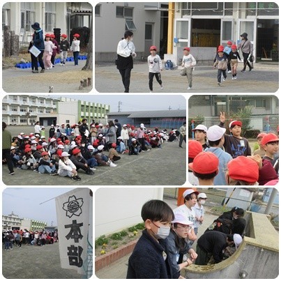 なた、感心したのは高学年の姿です。避難中に、低学年に優しく声をかけたり、集まってきたら、素早く整列して低学年に行動でお手本を示したりしてリードしてくれました。さらに訓練後、上履きを拭いた後の汚れた濡れぞうきんの片付けを6年生が自ら進んで片付けてくれました。