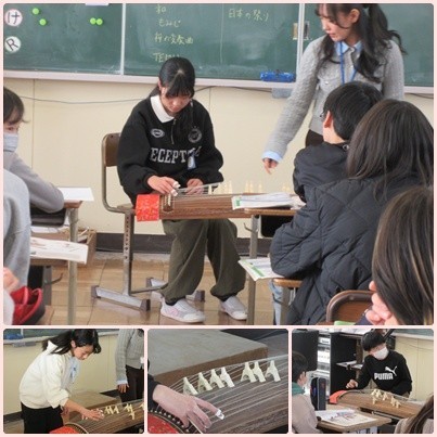 教室には、かつて地域の方から寄付していただいた貴重な「琴」が登場していました。