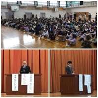 全校集会で表彰と夏休みの過ごし方についてのお話がありました。