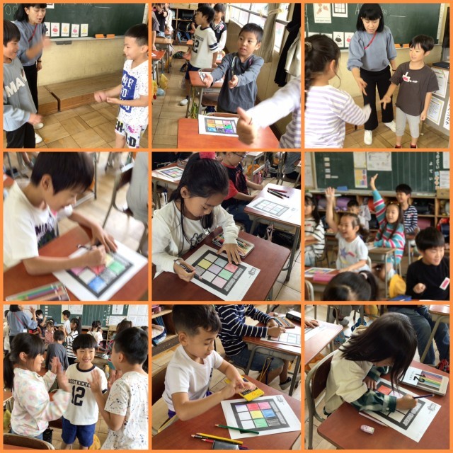 今日は、外国語活動の授業がありました。ジェスチャーをしながら、英語を話したり、色を勉強してビンゴをしたりしました。子どもたちは、とっても楽しそうでした!
