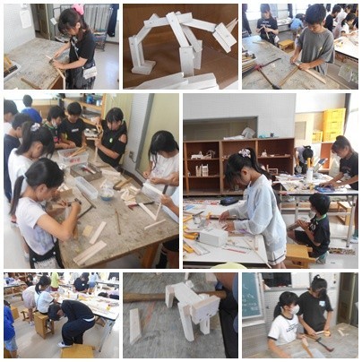 釘やボンドで木材を接着して。どんどんと形ができ上がってきました。