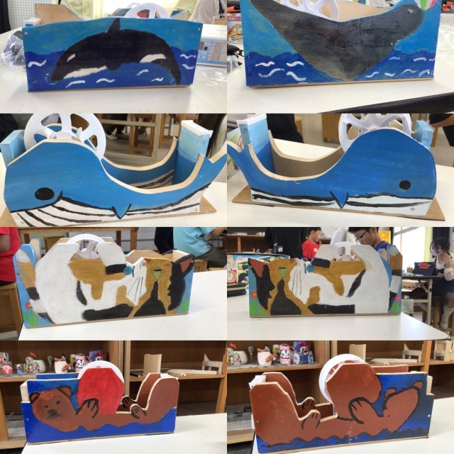 右と左でデザインを変えたり、テープの部分を別のものに見立てたりしている作品がありました。