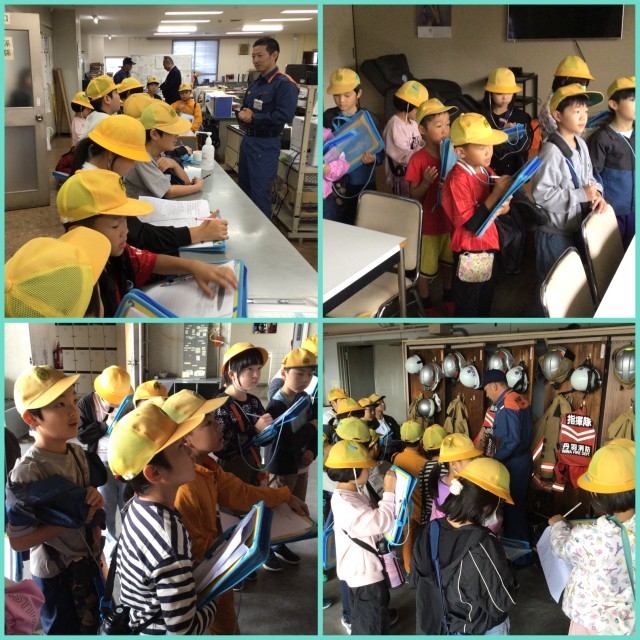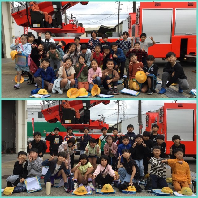 司令室や食堂、仮眠室、色々な種類の消防車を見させていただきました。実際に救急車が出動する様子も目の当たりにし、緊張感ある中でテキパキと行動する消防士の方々の貴重な姿も見させていただきました。私たちのくらしを守ってくださる消防士の方々のかっこいい姿に、多くの児童が驚き、たくさんのメモを取りながら、話を聞いていました。