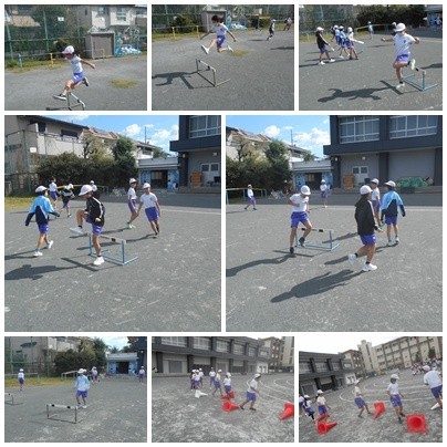できるだけ短い時間でハードルを跳び越えるにはどうしたらいいかを班のメンバーで考えながら、練習しました。